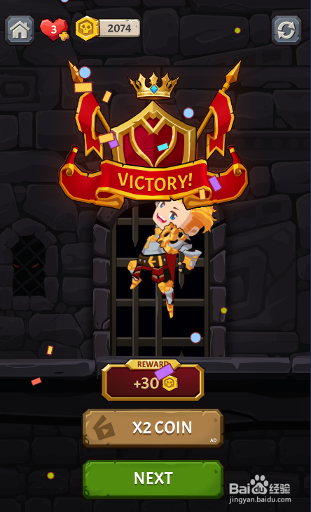 金发少年景功获得宝藏,弹出VICTORY画面,如图。这样就过关了。