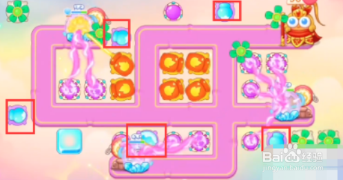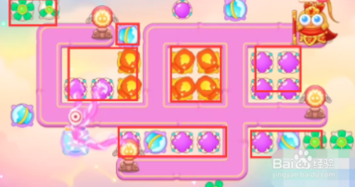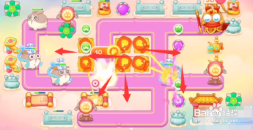 开始的时辰左上角一个电扇清算怪物,中上一个邪术球打相近停滞物,先打完下面的神灯,打完荷包之后打跑车兔之后在继续清算。
