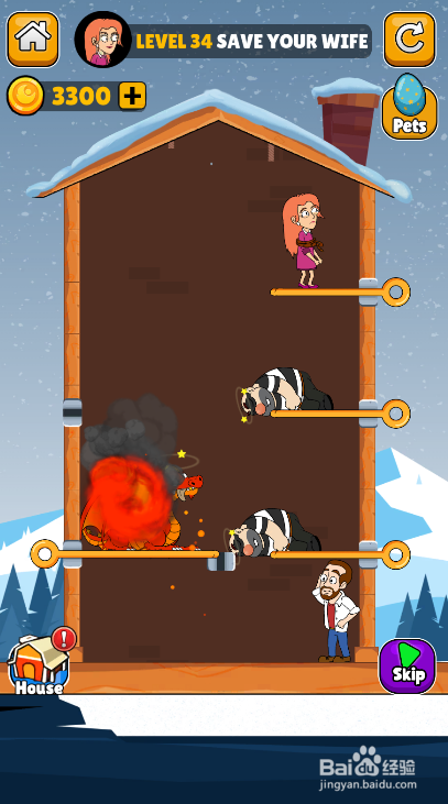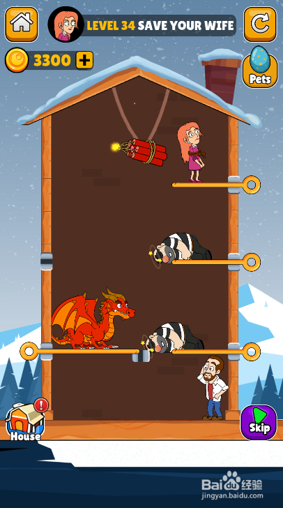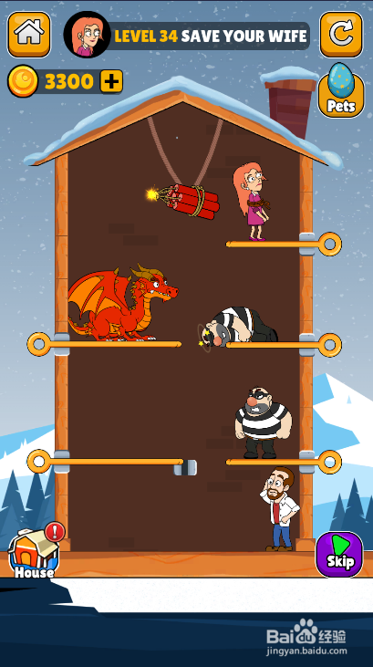 这一关内里有六个插销,通关使命是营救顶部的史姑娘师长教师,环境如图。