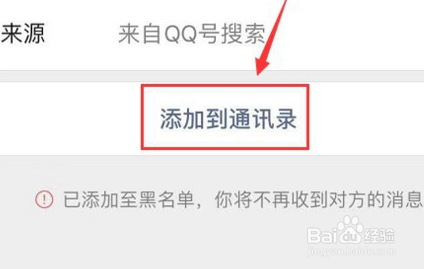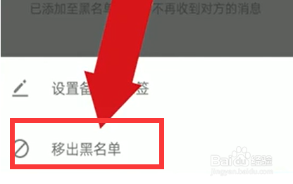 也可以打开对方资料设置页面,点击“移出黑名单”。