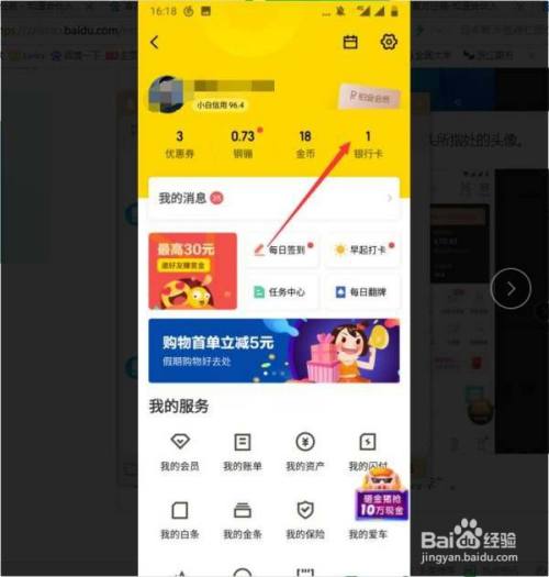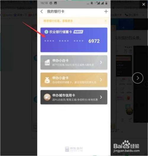 接下来在页面中选择红色箭头所指处的“银行卡”。