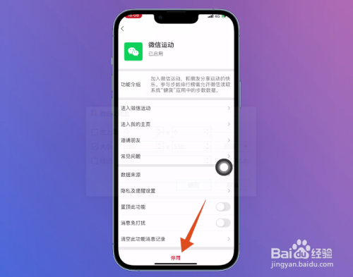 把微信运动的本家儿页面打开之后,点击页面下方位置的【停用】。