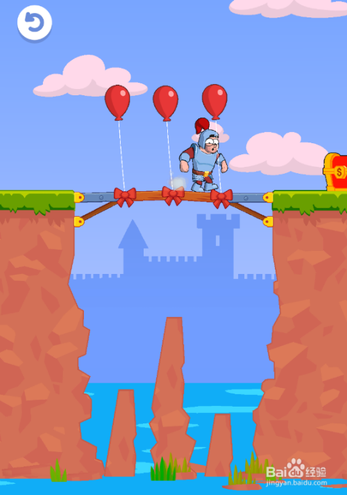 点击选择红色气球,拖放到左侧桥板的右端,如图。