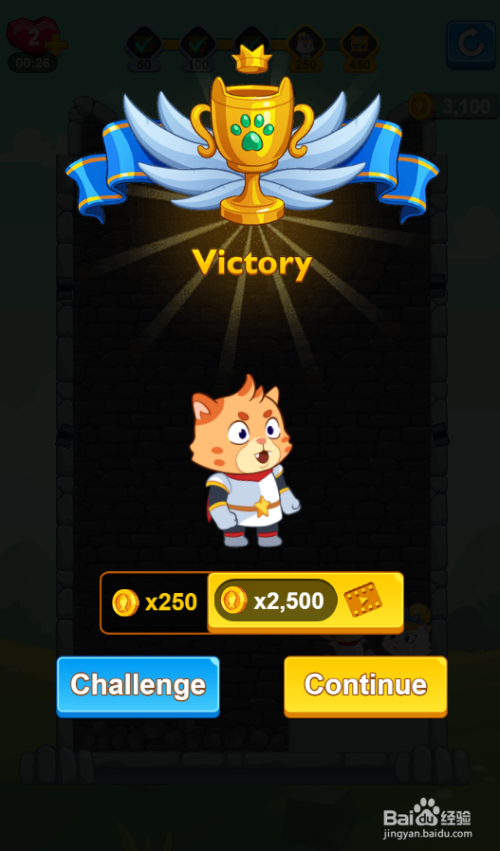 猫少年景功营救了猫公帮娃英本家儿,弹出奖杯裁冲动画,如图。这样就过关了。