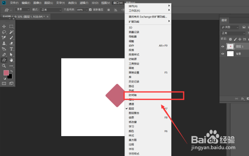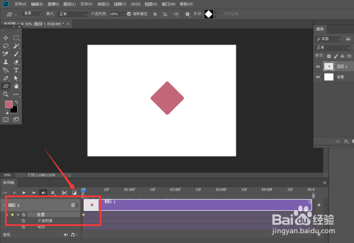 点击菜单栏【窗口】——【时间轴】——【创建时间轴】,找到方形卡片时间轴,点击【位置】前方的闹钟样图标,定下第一个标志点。