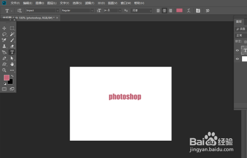 首先,打开photoshop,新建空缺画布,输入文字,调解好字体效果。