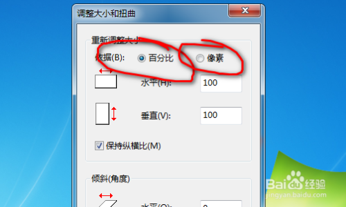 接下来我们就可以对图片巨细来举行设置,可以看到它调解图片巨细的依占有两种一种是百分比,一种是像素,而网站上尺寸要求一般都因此像素为本家儿的。以是我们在举行调解的时辰就选择像素依据。