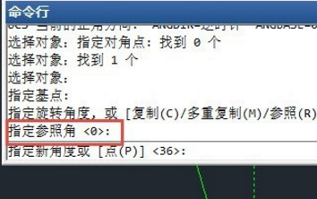 输入R回车,软件会提醒输入参照角,默认角度为0,也就是程度偏向,由于矩形是程度的,直接回车,软件会提醒输入新角度,如下图所示。