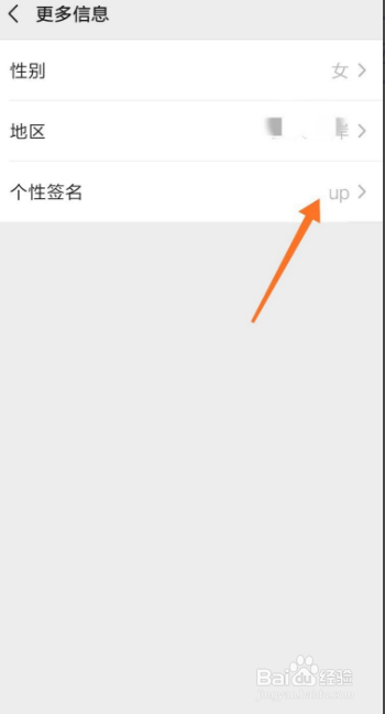 “更多信息”界面如下图所示,方框处可以看到“个性署名”,点击即可。
