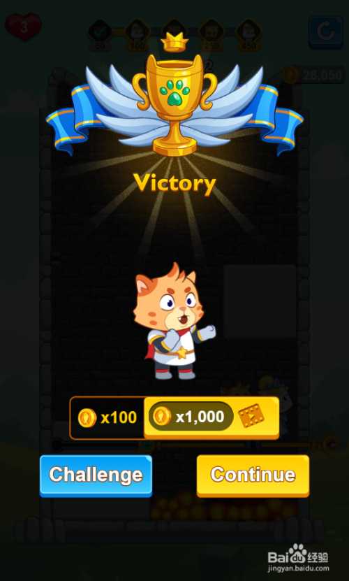 猫少年顺遂营救了猫公本家儿,弹出奖杯动画,如图。这样就过关了。