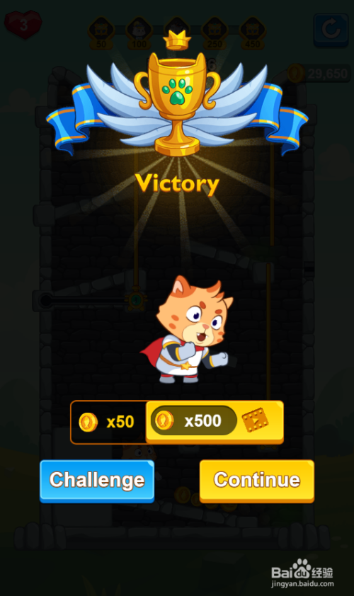 猫少年顺遂拿到宝藏,弹出奖杯动画,如图。这样就过关了。