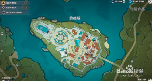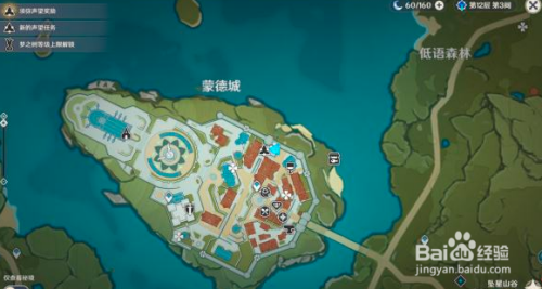 来到蒙德城传送点西海说神聊侧,前去如图位置,在蒙德家具图纸贩卖处旁取得宝箱二。