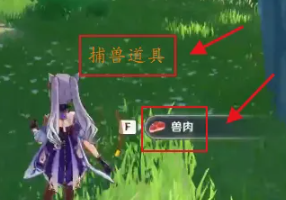 然后到野外处放置“捕兽道具”,即可得到“兽肉”,如图所示。