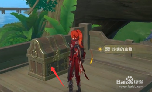 第一个宝箱靠左侧的锚点后往后看,宝箱在店肆上方顺着树往上走在屋顶。