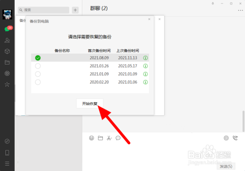 手机上确认恢复谈天记载,即可恢复删除的记载。