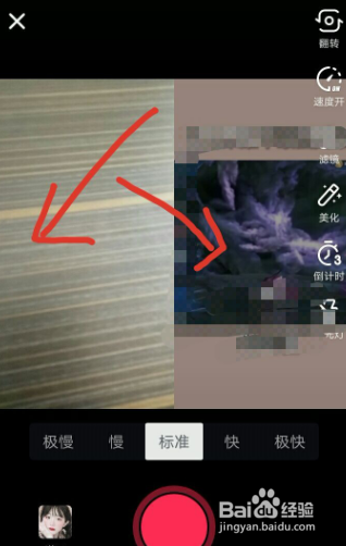 呈现合拍界面左边是咱们录像,右边是本身选择的合拍画面,如下图所示: