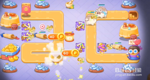 5、第六波左边一个船锚,清怪还能清算左边停滞物,中心在成立一个玉轮,有金币之后左边一个防空塔防。