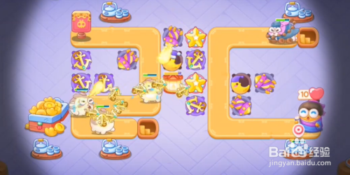 4、第四波中心成立一个星星,第五波再增长一个防空塔防,清算四周停滞物,有了金币再增长一个玉轮。