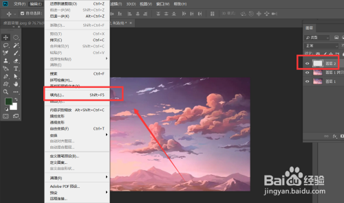 首先,我们打开photoshop,左上角【文件】——【打开】,导入一张都雅的素材图。按ctrl+j将素材图复制一次备用。