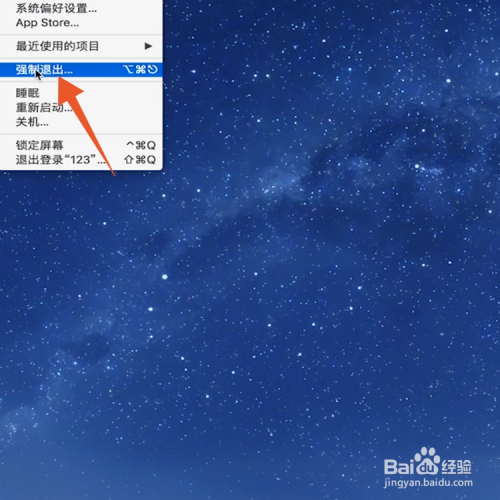 打开mac电脑,点击页面左上方的苹果图标,在弹窗里点击【强制退出】。
