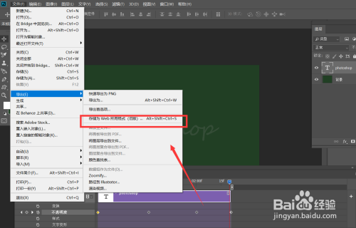 下面,点击左上角【文件】——【导出】——【存储为web所用格局】。