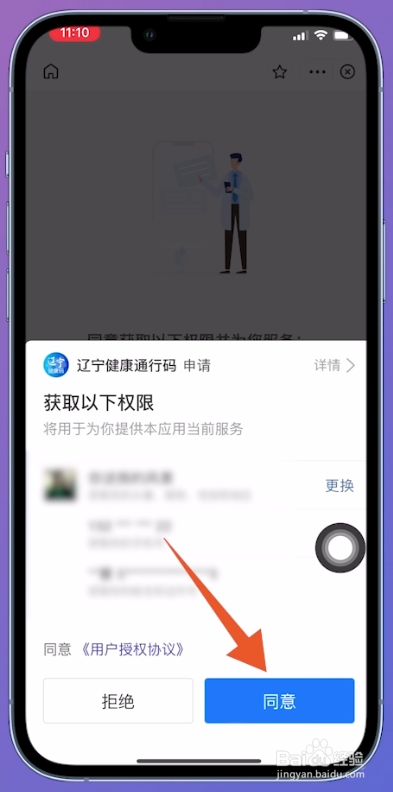 在弹出来的授权窗口中,点击下方位置的【赞成】按钮,许可辽事通利用信息。
