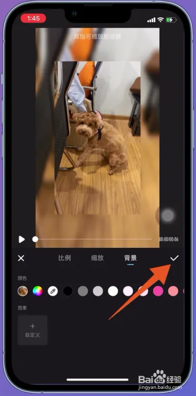 页面双指缩放视频至合适巨细,点击对勾图标,即可完当作视频配景虚化的操作。