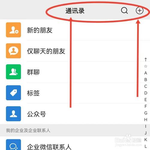 打开微信在通信录页面点击右上角的符号。