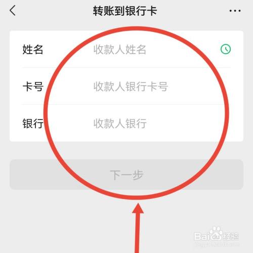 在银行卡页面输入需要转账的银行卡信息点击下一步。