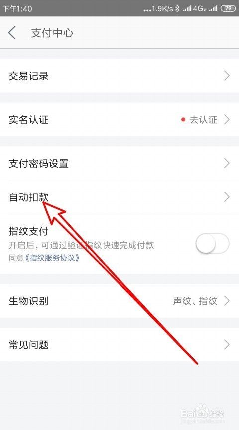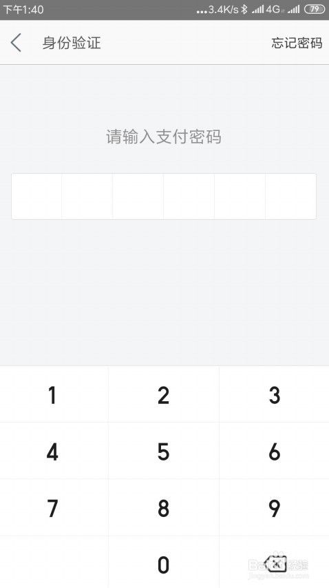 接着就会打开身份验证的页面,在页面中输入我们的支付密码,验证经由过程后就开启了主动付条目功效了。