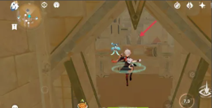 门打开后,用四叶印飞已往,取草神瞳。之后转头往下跳到标志点的洞口,如图所示。