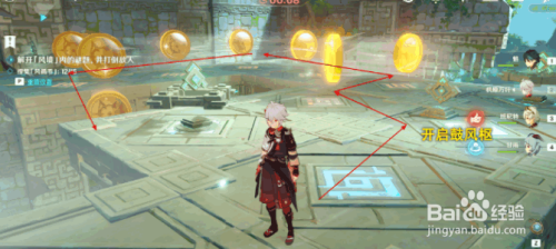 按下图路线,拾取金币,完当作挑战。