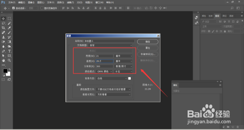新建画布巨细为21cm*29.7cm,即A4纸,分辩率为300ppi,颜色模式为CMYK模式