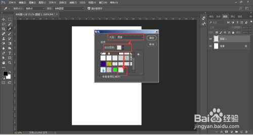 在填充属性中,内容选择填充图案,在选项设置中,找到刚生存的绿色边框,点击确定