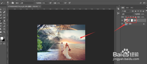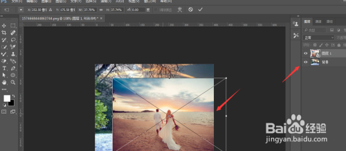 然后再置入别的一张图片,将其变换后调解下图片位置和巨细