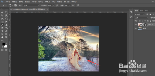 利用画笔,在右侧蒙版中举行涂抹就会将颠末的处所消弭失,如图所示,在图片周围举行涂抹消弭