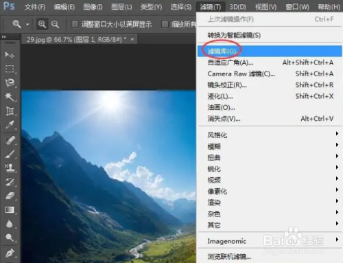 点击滤镜,选择滤镜库;