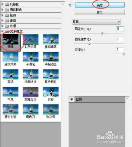 在艺术效果中选择壁画,设置好参数,按确定;