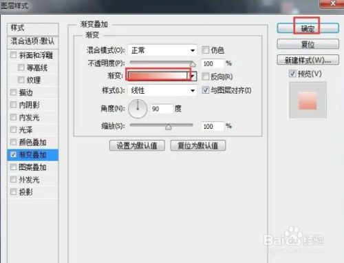 在打开的窗口中,选择一种渐变色,设置好参数,按确定;