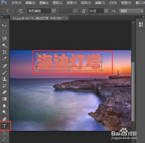 点击文字东西,选择橙色,输入海边灯塔;