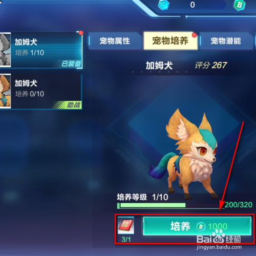 顶部点击宠物造就。