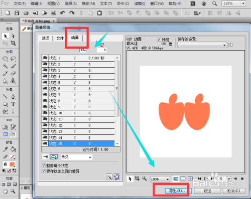 如图,在图层面板上面的状况栏显示的就是所创建的GIF动画各个状况,在这里可以设置中心距离时间