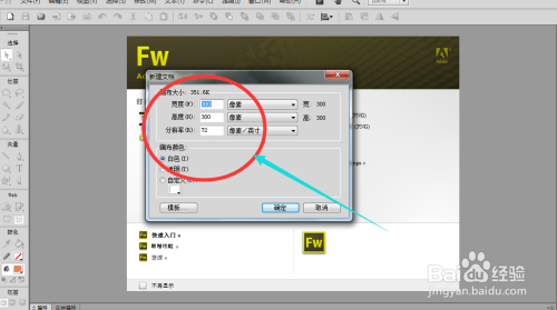 打开FW,然后成立一个300*300px的画布,选择白色配景色即可