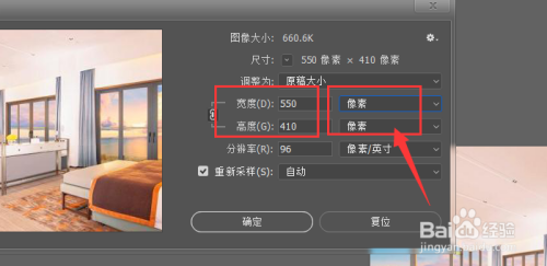 右侧栏中调解单元,可以查看像素、厘米巨细
