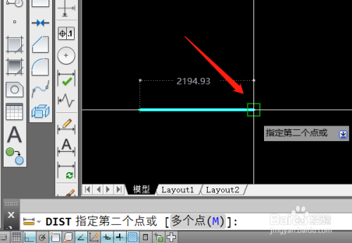 指定两个丈量点后,即可测出间隔值。