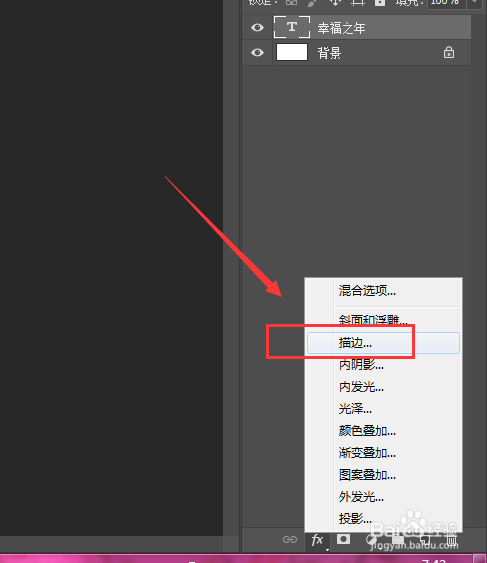 然后选中文字图层,打开下方的fx混淆选项栏