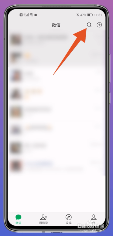 打开微信的本家儿页面后,点击上面的放大镜搜刮栏。