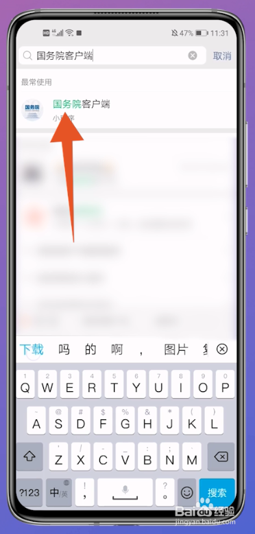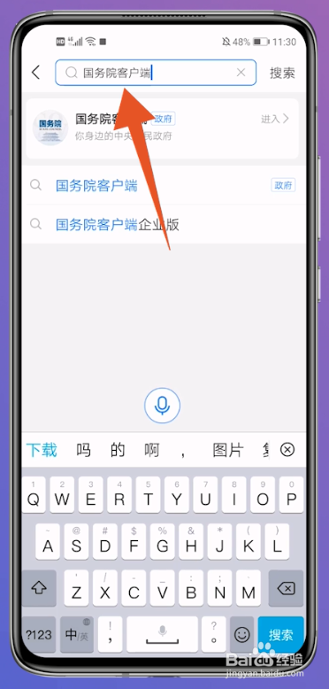 进入到搜刮栏界面后,在内里搜刮并点击进入国务院客户端。
