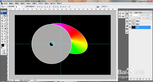 选中配景图层,填充玄色,继续调解图层图片,如图