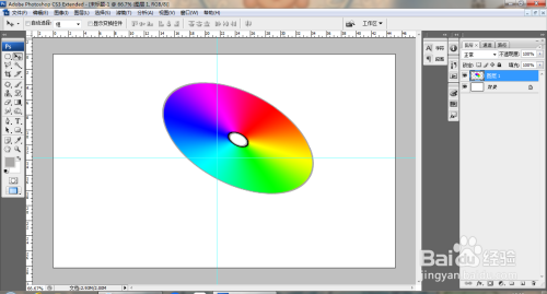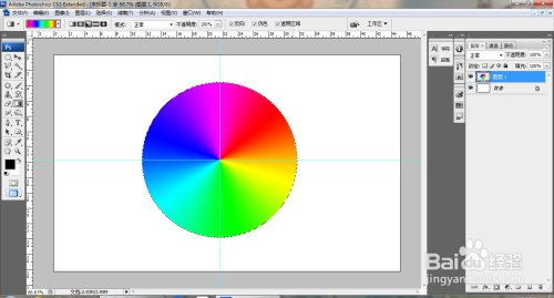 打开PS,新建空缺配景,打开标尺线,选择卵形选区东西,按alt+shift+T键绘制圆形选区,如图